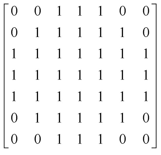 In order to eliminate the voids and noise in the segmented image and retain the basic feature information, this paper adopts the octagonal structure elements shown in Figure 10 to perform open and closed operations on the segmented image to remove the noise, fill the voids, and make the segmented edges smooth, and the final image obtained is shown in Figure 11b.