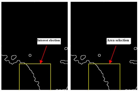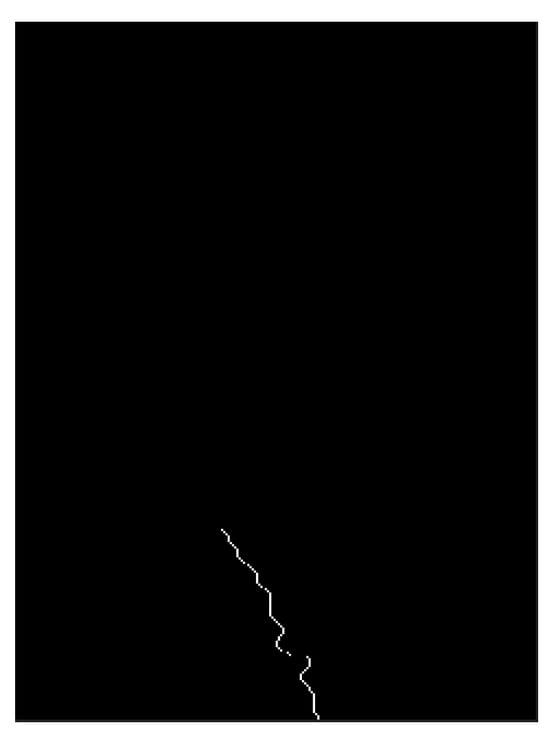 In order to obtain the boundary information, this paper first extracts the edge information of the binarized image after morphological filtering, as shown in Figure 12, which completely retains the boundary information of the region. From the figure, it can be seen that there is interference edge information in the image that has nothing to do with the target region; in order to remove the interference of these error messages, this paper extracts the 100 pixels × 120 pixels part of the bottom center of the image with more boundary information as the interval of interest and uses it to make the key information region of the start route extraction.