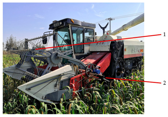 Millet is one of China’s primary minor grain crops, with a cultivation area of approximately 2 million hectares. It is highly nutritious, rich in protein, fats, and vitamins, serving both as a food crop and as high-quality animal feed, thus providing both dietary and economic value [1]. While rice, wheat, and rapeseed benefit from continuous advancements by scholars in threshing efficiency, cleaning performance, and noise reduction [2,3,4,5,6,7,8], the low mechanization rate in millet harvesting remains a major constraint to expand millet cultivation further. In recent years, to enhance the mechanized harvesting of millet, numerous researchers and manufacturers have modified rice and wheat combine harvesters to meet the specific requirements for millet harvesting.