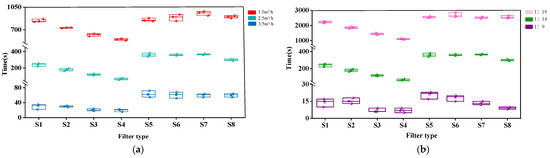 3.2.3. Changes in Head Loss of Different Filters and Their Combinations