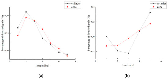 3.1.2. Analysis of the Distribution of Threshed Grain