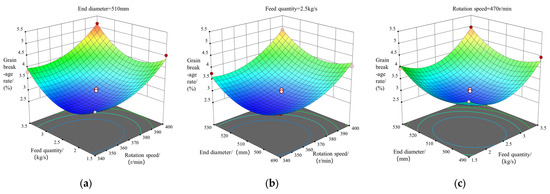 | Test Number | A: Rotation Speed (rpm) | B: Feed Quantity (kg/s) | C: End Diameter (mm) | Breakage Rate (%) |