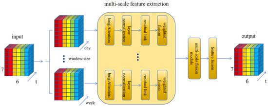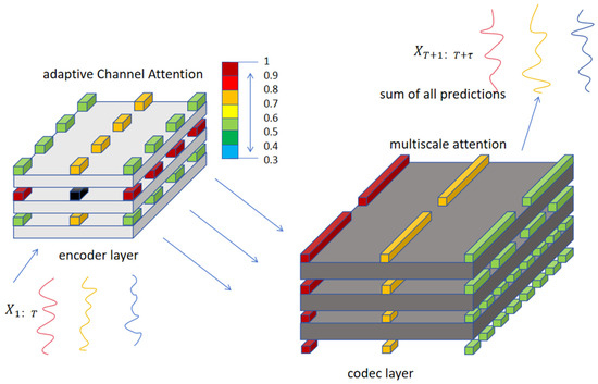- An adaptive channel attention mechanism and a multi-scale attention mechanism are designed. The former is able to adaptively adjust the weights of different channels according to the characteristics of the input data while suppressing those irrelevant or redundant channels. The latter is used to capture cross-time dependencies more accurately, and by computing attention at different time scales, the model is able to understand the features and structures in the data more comprehensively, thus improving the accuracy and generalization ability of the prediction.