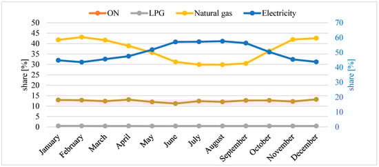 | Month | Natural Gas | LPG | ON | Electricity | Sum |