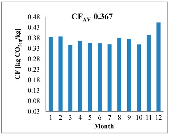 - The determined carbon footprint of production was 0.340–0.448 kg CO2eq/kg, and the average CFAV was 0.367 kg CO2eq/kg.