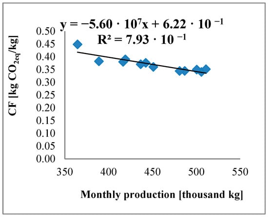 - A significant relationship was demonstrated between the carbon footprint and the monthly production volume, which allows for planning production in the context of sustainable development.