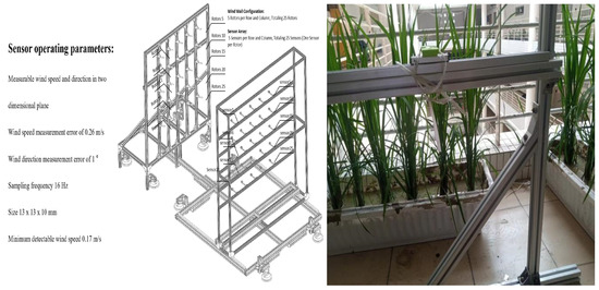 In this experiment, rice was exposed to the simulated wind field. After pre-experimental testing, it was finally decided to place the rice at a distance of 1.1 m from the wind turbine array, and the sensor array collected the parameters of the wind field plane at this location. It can be seen that the rice was subjected to wind field parameters in this experiment.