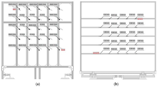 Using computer control to issue speed control commands to the fan array, individual control of the speed of each motor can be achieved. The set speed of each fan is shown in Figure 2, which provides a suitable simulated wind field for rice cultivation. The sensor array of the wind wall device is used to collect simulated wind field parameters at different positions, which characterizes the distribution of the wind field when acting on rice.