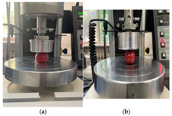 Compression tests of Cerasus humilis fruit. (a) Axial compression test; (b) radial compression test.