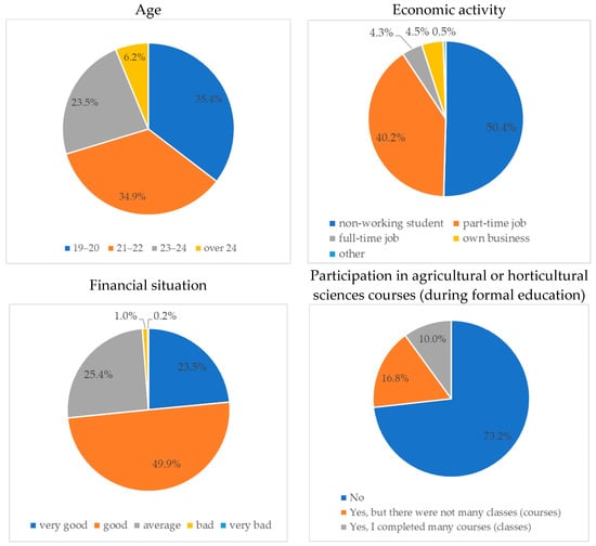 | Participation in agricultural or horticultural sciences courses (during formal education) | - No - Yes, but there were not many classes (courses) - Yes, I completed many courses (classes) | 424 97 58 | |