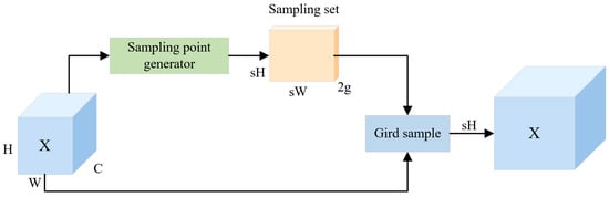 When feature maps are made bigger, traditional upsampling methods like bilinear interpolation and transposed convolution often lose high-frequency details and texture information. This makes it harder to find small or densely grouped pomegranate fruits. To overcome this limitation, we introduce a dynamic upsampler termed Dy-sample [18], which is illustrated in Figure 3. Dy-sample primarily leverages a point-wise resampling approach, circumventing the computationally expensive dynamic convolutions and supplementary subnetworks required to generate dynamic kernels. This approach significantly enhances the model’s processing speed and versatility while maintaining its superior computational efficiency.