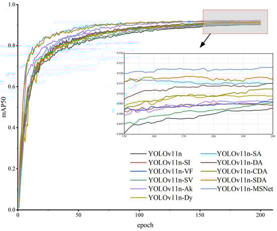 To ensure the model fully captures features and to prevent potential cross-domain biases arising from pre-trained weights, this study employed a random initialization strategy during training. The input images were uniformly resized to 640 × 640 pixels, and the training procedure spanned a total of 200 epochs, each consisting of 512 iterations, with a batch size of eight images per iteration. In terms of an optimization strategy, the AdamW optimizer was utilized with an initial learning rate of 0.02 and its learning rate decay factor (lrf) set to 0.1. We applied a cosine annealing schedule (cos_lr = True) for a smooth learning rate decay, which permits finer parameter tuning in later training phases. To ensure robust results, we reported all evaluation metrics as the mean of ten independent runs.