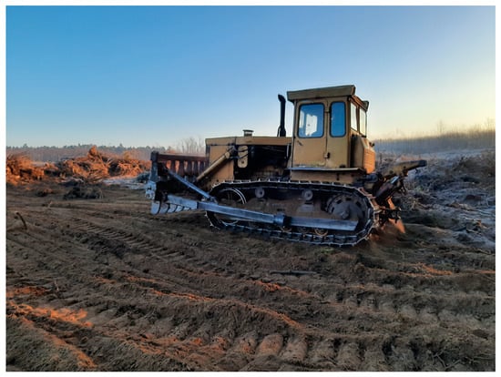 - Dolmatov, S.; Makunina, Y.; Voinash, S.; Tikhonov, E.; Aksenov, A.; Alekseeva, S.; Parfenopulo, G. Search for Reserves to Improve the Efficiency of Forest Soil Preparation Technology and Land Clearing during Reforestation by Reducing the Energy Intensity of the Process. E3S Web Conf. 2023, 390, 7045. [Google Scholar] [CrossRef]