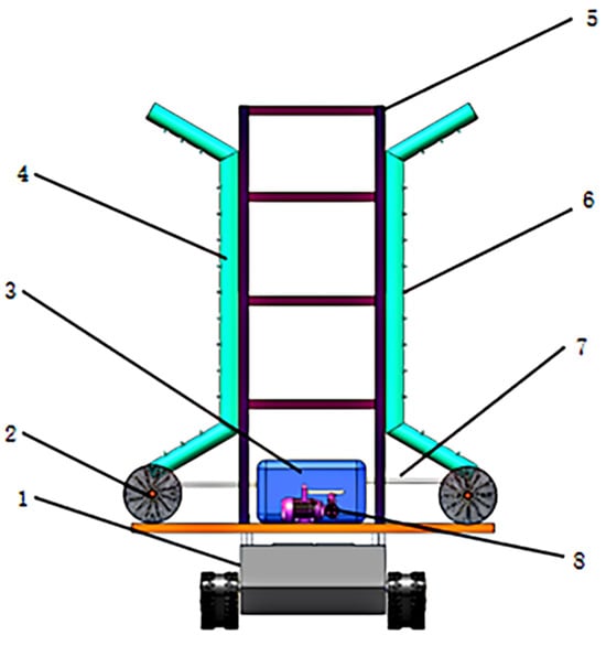 - Qiu, W.; Ding, W.; Wang, X.; Gong, Y.; Zhang, X.; Lü, X. 3WZ–700 Self–propelled Air–blowing Orchard Sprayer. Trans. Chin. Soc. Agric. Mach. 2012, 43, 26–30, 44. [Google Scholar]