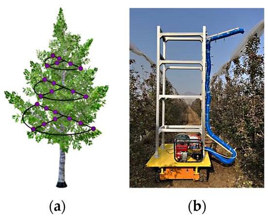 - Jiang, H.; Niu, C.; Liu, L.; Wang, D.; Wang, J.; Mao, W. Design and Experiment of Air Volume Control System of Orchard Multi–pipe Air Spraye. Trans. Chin. Soc. Agric. Mach. 2020, 51, 298–307. [Google Scholar]