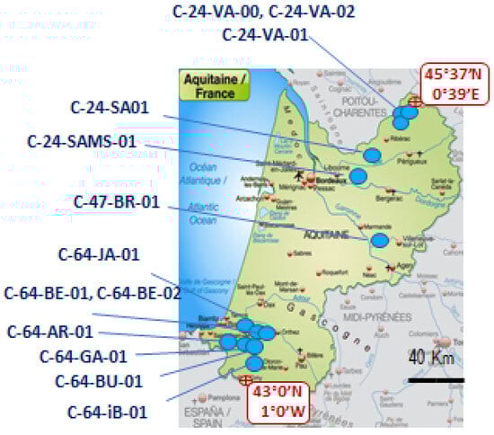 Sampling location in the Aquitaine region (France) during the 2020 or 2021 growing seasons.