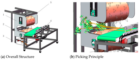 - Liu, S. Design and Experimental Study of Drum Type Wild Chrysanthemum Picking Device. Master’s Thesis, Northwest A&F University, Xianyang, China, 2023. (In Chinese). [Google Scholar]