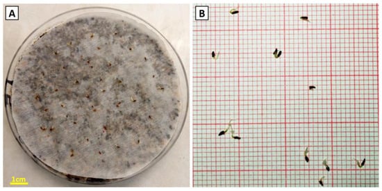 Detected seed germination in Petri dishes (A) and germinated individual seeds of Campanula cretica (B).