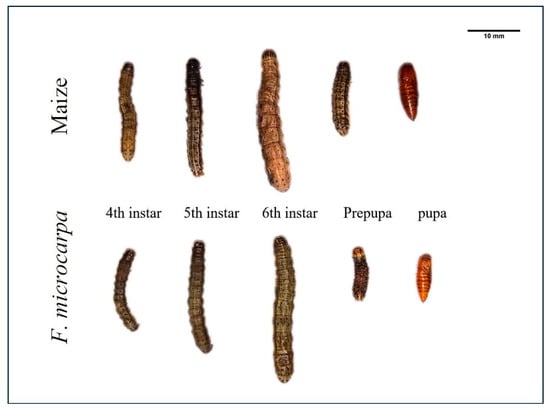 Fall armyworm larvae and pupae feeding on maize and F. microcarpa.