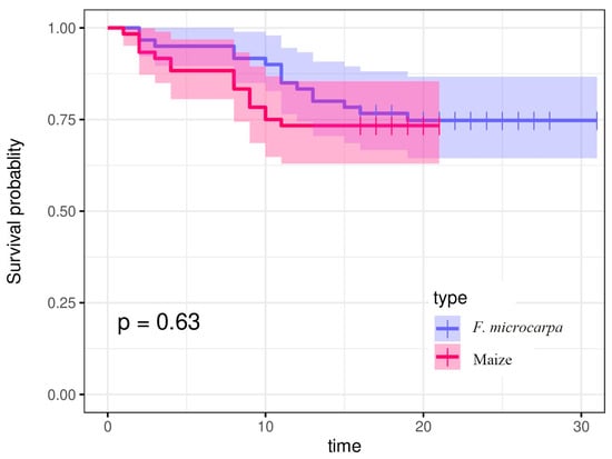 The survival rate of fall armyworms feeding on maize and F. microcarpa.