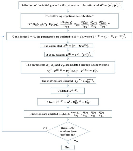 With the above, to obtain the estimation of the parameters , an iterative algorithm was used, according to the steps described in Figure 3.