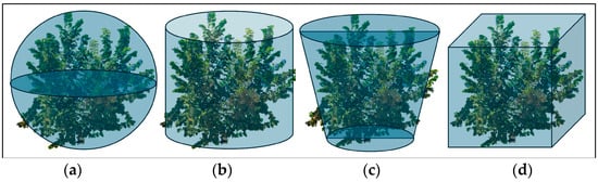 Canopy shape compared to the ellipsoid (a), cylinder (b), cone trunk (c) and parallelepiped (d) shapes.