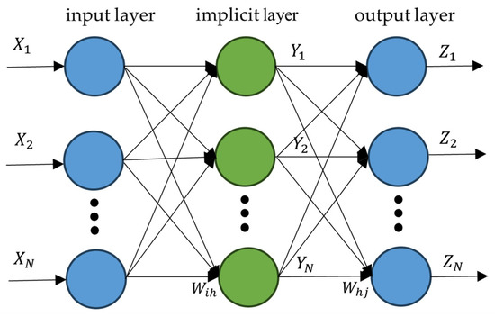 The backpropagation neural network learns through forward transmission and backpropagation. When transmitting forward, the input signal is processed by one or more hidden layers and then transmitted to the output layer. If the output is incorrect, the error propagates backward, and the weights are adjusted layer by layer to optimize the network performance. The number of iterations in the network training parameters is 1000, the error threshold is 10−6, the learning rate is set to 0.01, and the BPNN structure is shown below (Figure 5).