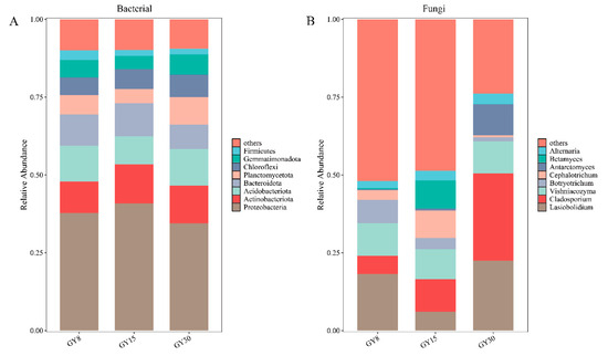 - Liu, J.; Yao, Q.; Li, Y.; Zhang, W.; Mi, G.; Chen, X.; Yu, Z.; Wang, G. Continuous Cropping of Soybean Alters the Bulk and Rhizospheric Soil Fungal Communities in a Mollisol of Northeast PR China. Land Degrad. Dev. 2019, 30, 1725–1738. [Google Scholar] [CrossRef]