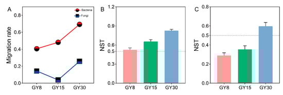 3.7. Predictors of Bacterial and Fungal Community Assembly Processes