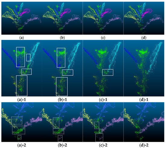 - Liang, X.; Yu, W.; Qin, L.; Wang, J.; Jia, P.; Liu, Q.; Lei, X.; Yang, M. Stem and Leaf Segmentation and Phenotypic Parameter Extraction of Tomato Seedlings Based on 3D Point. Agronomy 2025, 15, 120. [Google Scholar] [CrossRef]