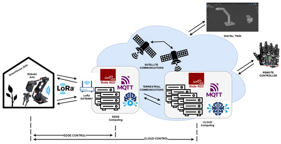 The proposed network and system architecture are illustrated in Figure 3. In general, the adoption of IoT and DT technologies has become essential in the transition from traditional GH cultivation to intelligent and optimized farming.