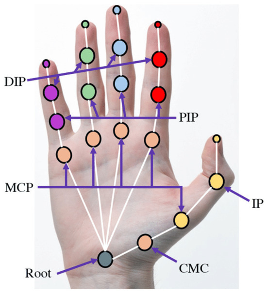 The human hand can perform a diverse range of movements through the coordinated contraction and relaxation of muscles, regulated by the nervous system. However, the glove integrated into our architecture is designed to capture only the movements of the Metacarpophalangeal (MCP) joints and the palm’s inclination, which is sufficient for our application scenario.