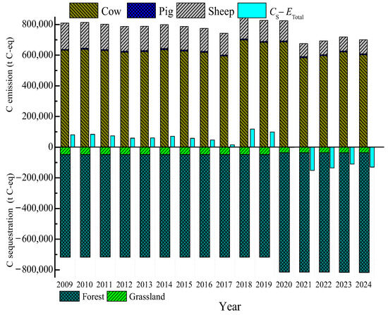 APA StyleChang, G., Wang, J., Liu, P., Wang, Q., Han, F., Wang, C., Sumpradit, T., & Gao, T. (2025). Key Influencing Factors in the Variation in Livestock Carbon Emissions in the Grassland Region of Gannan Prefecture, China (2009–2024). Agriculture, 15(12), 1300. https://doi.org/10.3390/agriculture15121300