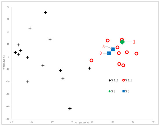PCA scatter plot of 17,426 SNP genotype data points for the 29 rice samples.