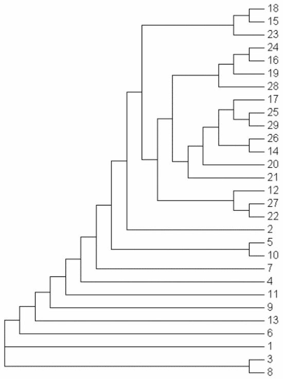 Cluster dendrogram of the 29 rice samples.