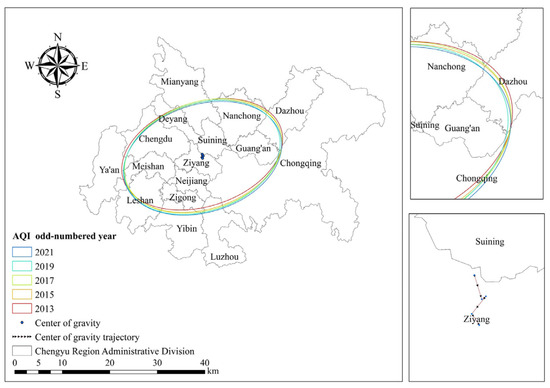 Standard Deviation Ellipse Parameters of WCI and AQI in the Chengdu-Chongqing Region.