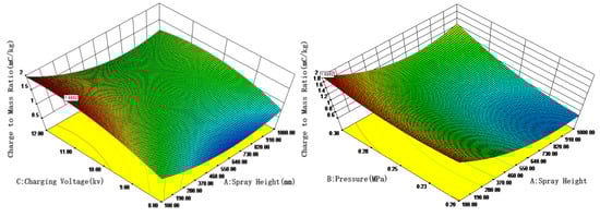 These results demonstrate that spray height, spray pressure, and electrostatic voltage significantly influence the charge-to-mass ratio model.