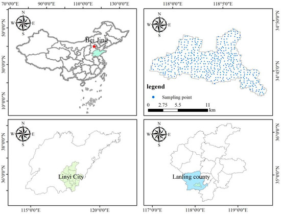 The protection of agricultural soil quality and ecological security, safeguarding agricultural product safety, and maintaining sustainable agricultural development have long been the key research foci in the scientific community. As an indispensable spice crop, garlic possesses significant culinary, medicinal, and economic values [8,9]. However, its growth and development are particularly vulnerable to heavy metal stress, especially from cadmium (Cd) and lead (Pb). Under Cd/Pb stress, garlic exhibits a marked reduction in root development and sprouting, ultimately compromising yield and quality [9,10]. Moreover, the consumption of heavy metal-contaminated garlic may lead to the bioaccumulation of toxic elements in humans, posing substantial health risks. As a major garlic cultivation region in China, Shandong Province faces particularly acute challenges related to soil heavy metal contamination. Linyi’s Lanling County is designated as a “National High-Quality Garlic Production Demonstration Base” and renowned as “China’s Garlic Homeland”, producing the distinctive Cangshan garlic variety. This cultivar is characterized by its unique flavor profile (pungency, spiciness, viscosity, and richness) and superior nutritional composition, containing higher levels of all 17 amino acids compared to other regional varieties. With over two decades of export history, the Cangshan garlic industry represents a vital economic sector [11]. However, decades of intensive agricultural and industrial development have potentially compromised local soil environments. The current research on garlic-growing regions has primarily focused on Jinxiang County and Qi County [12,13], while systematic investigations of soil quality characteristics in Lanling’s garlic production areas remain notably absent. Given garlic’s triple role as an economic crop, medicinal resource, and culinary staple, soil quality directly determines both crop productivity and regional brand value. Therefore, conducting comprehensive regional soil quality assessments is imperative to ensure sustainable agricultural development and maintain the yield and quality of this premium agricultural product.