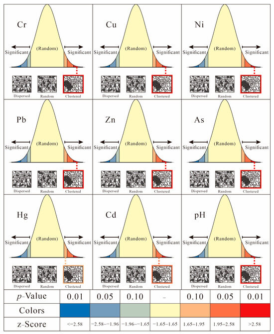 Distribution of heavy metal Moran’s indices in soil from the study area.