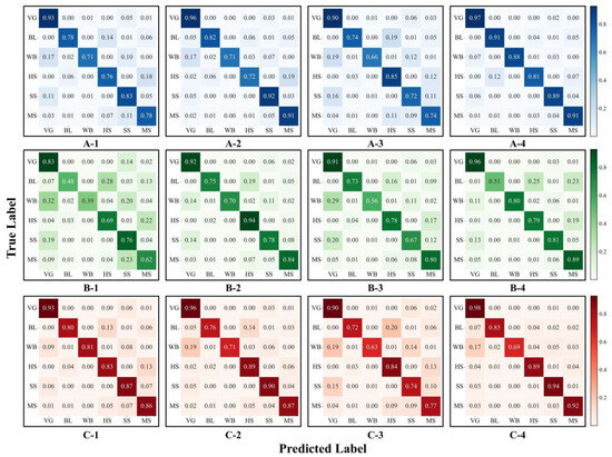 The effectiveness of the proposed networks was assessed using standard evaluation metrics, including precision, recall, Overall Accuracy (OA), kappa coefficient, mean Intersection over Union (mIoU), and Macro F1-score. For all these metrics, higher values indicate better classification performance.