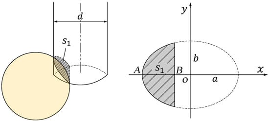 To the direction of the long axis of the ellipse for the x-axis, the short axis for the y-axis, and the center of the ellipse as the origin to establish a right-angled coordinate system, the collision cross-sectional area s1 can be expressed as