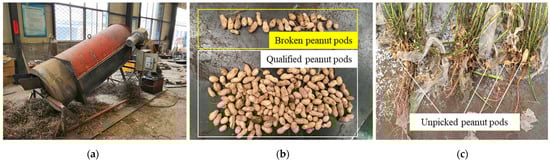 - Wang, B.; Gu, F.; Cao, M.; Xie, H.; Wu, F.; Peng, B.; Hu, Z. Analysis and Evaluation of the Influence of Different Drum Forms of Peanut Harvester on Pod-Pickup Quality. Agriculture 2022, 12, 769. [Google Scholar] [CrossRef]