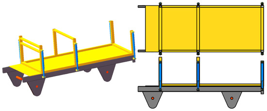 To optimize structural integrity while minimizing overall weight, the main chassis beam utilizes 65Mn steel rectangular tubing (180 mm × 65 mm × 8 mm cross-section). The support framework for the operator cabin and lifting platform employs Q355 steel rectangular members (90 mm × 55 mm × 5 mm cross-section), achieving an optimal balance between strength-to-weight ratio and durability. This material selection and structural configuration ensure sufficient load-bearing capacity for field operations, while maintaining maneuverability in pineapple plantation environments. The overall chassis configuration is illustrated in Figure 8.