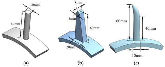 The pickup operation of the nail-tooth primarily relies on contact interaction between the tooth tip and residual film; consequently, the morphological characteristics of the tooth tip significantly influence retrieval efficacy. Drawing upon established designs from existing residual film recovery machines, three distinct tooth profiles were engineered as illustrated in Figure 9.