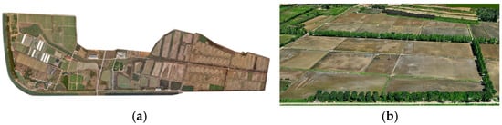 Three-dimensional field reconstruction results of the Houbaix Farm using DJI UAV imagery(DJI Mavic 3 Pro UAV; DJI, Shenzhen, China). (a) Overall 3D reconstruction. (b) Local detail showing terrain and field edge features.
