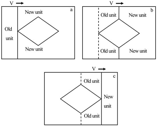 For the buffered field polygon (see Figure 6c), when an infinitely long sweep line oriented at angle moved from left to right, each time crossed a boundary vertex it triggered an IN/OUT event (see Table 1 for definitions and Figure 2 for event types). Let each polygon edge have outward normal angle . The number of subregion strips can be approximated as follows (derivation adapted from [1]):