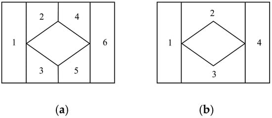 Comparison of unit partitioning strategies: (a) Trapezoidal decomposition (units numbered 1–6 in generation order). (b) Boustrophedon-based decomposition (units numbered 1–4 in generation order).