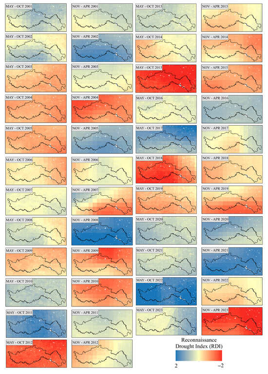This study employed five drought-related indices: the SPI, SPEI, AI, RDI, and NDVI anomaly to characterize the spatiotemporal dynamics of drought across Thung Kula Ronghai from 2001 to 2023. Each index was calculated separately for the wet season (May to October) and the dry season (November to April) to enable detailed seasonal comparisons.