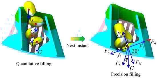 In order to elucidate the enhancing principle of the quantitative precision filling method on the filling effect under high-speed conditions, as well as the relationship between the initial filling and the precision filling stages, it is necessary to analyze the forces on the seed during the overall filling process (Figure 7).