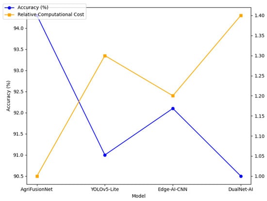Figure 8 illustrates this comparison, showing how AgriFusionNet strikes an ideal balance between performance and efficiency. Coupled with Table 9, it becomes evident that our method offers a comprehensive solution delivering high accuracy, reduced computational cost, and seamless integration with real-world IoT systems. This positions AgriFusionNet as a viable solution for widespread deployment in smart agriculture initiatives, especially in regions with constrained digital infrastructure.